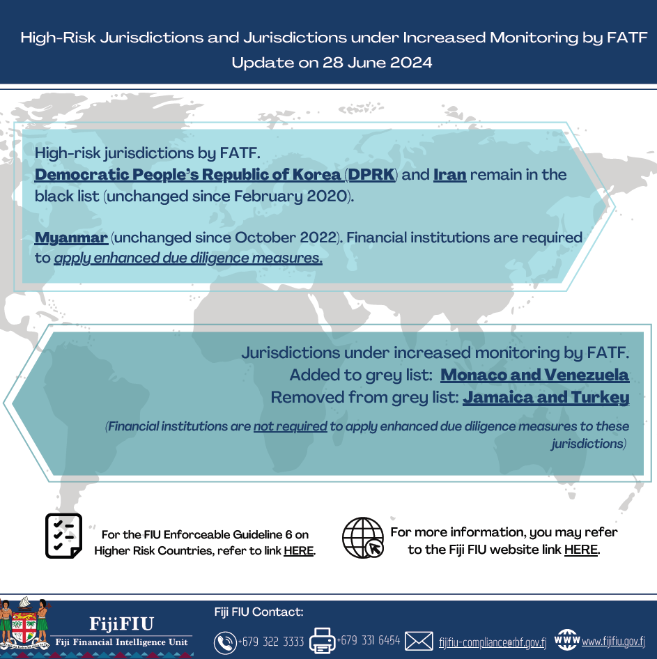 June 2024 update from FATF Public Statement on High-risk jurisdictions and Jurisdictions under increased monitoring by FATF.