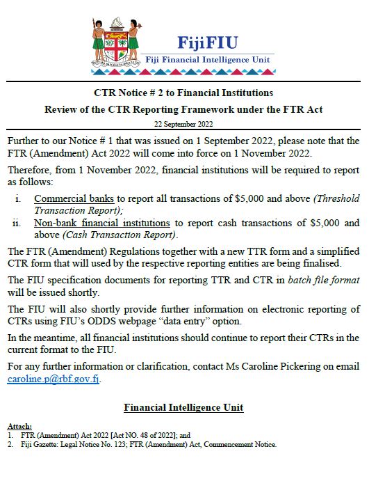 Further to our Notice # 1 that was issued on 1 September 2022, please note that the FTR (Amendment) Act 2022 will come into force on 1 November 2022.