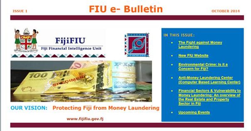The Fiji FIU released its first e-Bulletin Quarter 3, 2014 Issue # 1 on 22 October 2014.
